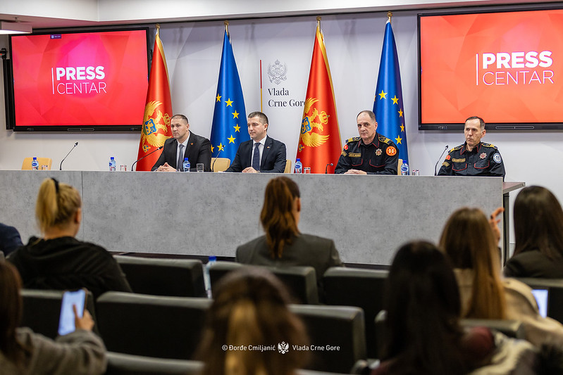 Potpredsjednik Vlade za bezbjednost i odbranu Aleksa Bečić i direktor policije Lazar Šćepanović obratili su se javnosti na pres konferenciji čiji je povod predlog izmjena i dopuna Zakona o bezbjednosti saobracaja na putevima, koji je Vlada danas utvrdila na sjednici.