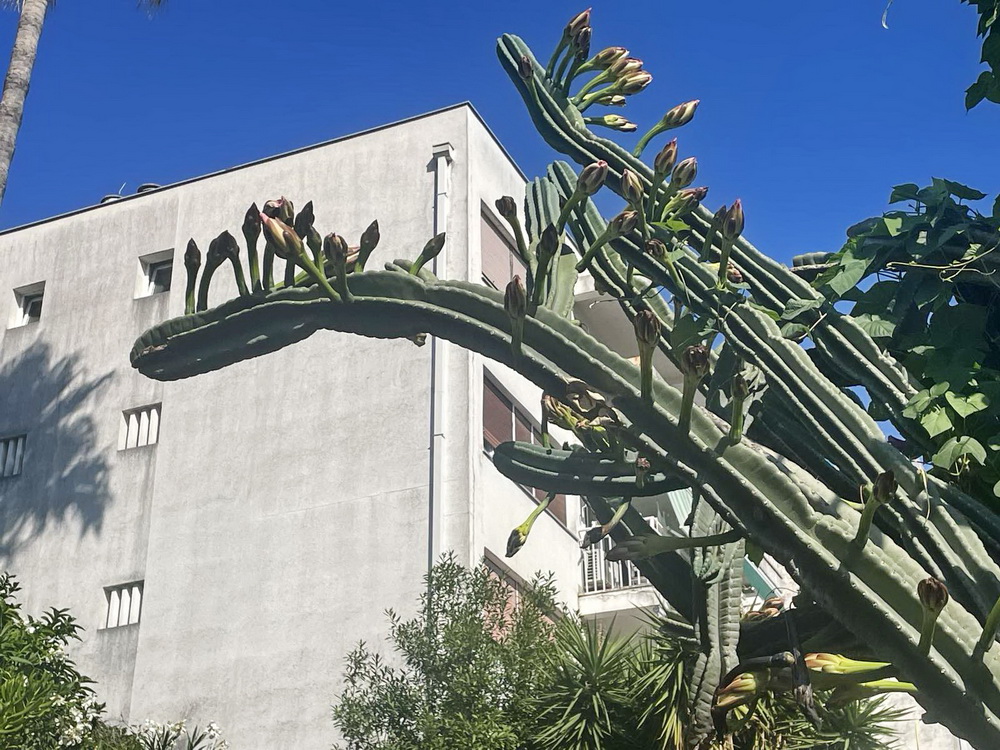 Ono što ga izdvaja jeste noćno cvjetanje. Tokom toplih ljetnjih večeri, iz guste mase bodlji pojavljuju se veliki, bijeli cvjetovi – promjera i do 20 centimetara. Otvaraju se samo jednom, tokom noći, i traju svega nekoliko sati. Njihov miris privlači noćne oprašivače poput moljaca i slepih miševa, a oni koji imaju priliku da vide cvijet kažu da je prizor tih, kratkih sati jedan od najljepših u svijetu biljaka. Ipak, ove godine uočene su i neobične promjene: pod uticajem toplijih noći i promjenljivih uslova, pupoljci se ponekad zadrže zatvoreni ili se otvore drugačijim ritmom nego ranije – tihi znak da i biljke osjećaju promjene klime.