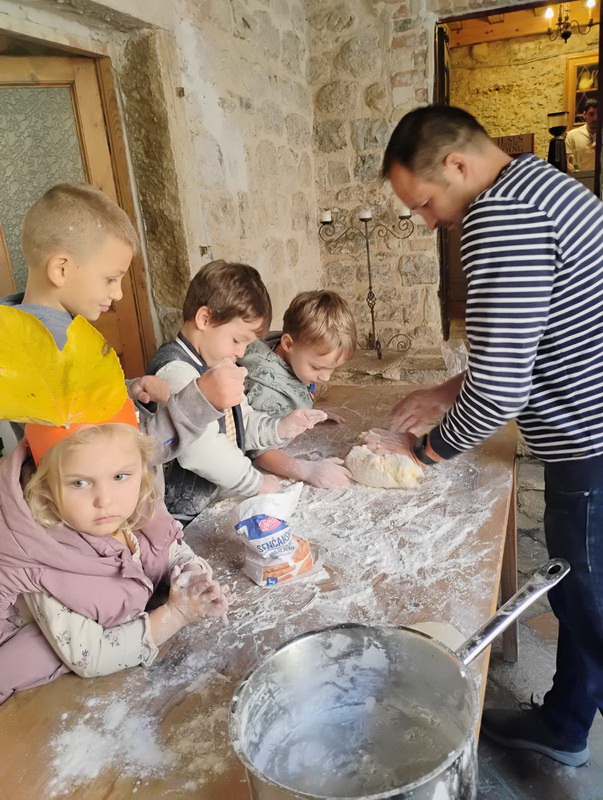 U veseloj i razdraganoj atmosferi mališani su imali priliku da u terminu od 11.30 do 13.30 sati uz vrsnog kuvara Damira Moškova učestvuju u radionici rukotvorina od tijesta i da nauče da prave paštu i njoke, kao i da naprave krune od raznobojnog lišća u radionici koju je vodila Ana Usanović Vulović, ili pak da oslikavaju bojanke i da se igraju na livadi-igralištu u unutrašnjem dvorištu Samostana. Za to vrijeme roditelji i njihovi prijatelji su brinuli o bogatom posluženju, ujedno i sami dajući dobrovoljne novčane priloge u kutiji postavljenoj na bunaru u centru klaustra.