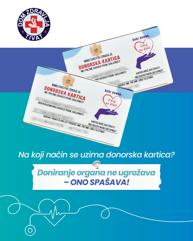Donorsku karticu može potpisati svaka punoljetna osoba, uz informisani pristanak. Kartica se dobija jednostavno, u zdravstvenoj ustanovi, a odluka se može promijeniti u bilo kom trenutku.