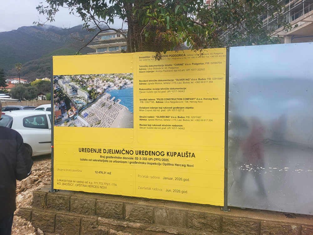 Nova plaža u Baošiću, koju je nasipanjem mora i uništavanjem kamenog mula, mandraća i prepoznatljive lanterne, stvorio investitor Carine doo, na površini od 12.000 m2 za potrebe svog „gradnioznog“ hotela izazvala je burne reakcije građana, saopštila je predsjednica GP „Idemooo“ i odbornica u lokalnom parlamentu, Olivera Doklestić.