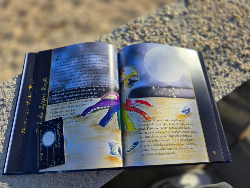 Bruna Bajić: Važno mi je naglasiti da priče nisu uređivane – one su ostale iste, jer su nastale iz vrlo preciznog emotivnog mjesta. Unaprijeđen je dizajn knjige i njeni elementi. Knjiga je vizualno raskošnija, uz knjigu uz mojih 12 priča, tu su I 24 ilustracije koje je radila Doris Živalj, www.fleche.hr , glazba koju je radio autor soundtracka filma Ozren K Glaser i moja naracija svih priča na dizajnerskom USBu. Knjiga je uistinu jedno cjelovito iskustvo I iako je 2018. odmah rasprodana, uz pomoć Orca Crew Services Croatia i gospođe Sanje Markoč Jazavac, odlučili smo opet ovu priču vratiti tamo gdje pripada- u dječje ruke. Autentični umjetnički projekti jako ovise o ljudima s vizijom, tako da uz Orca Crew Services Croatia smo uspjeli vratiti i film na personaliziranom USBu i knjigu ljudima koji vole ovaj projekt i dugo to traže. Jako me veseli cijeli proces i ovo je baš pokazatelj moći timskog rada. Tu si i Implant centar Frankić i jedan divni koncept IPD Academy u sklopu IPD international gdje sam trenutno edukant integralne tjelesne psihoterapije koji su čak u sklopu svog programa izrealizirali i aplikaciju namijenjenu asistenciji roditeljima u odgoju. Ww.ipd-academy.eu/ .
