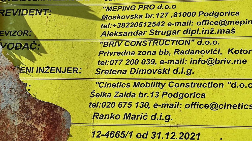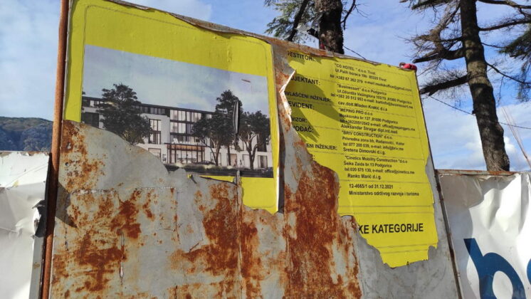 Radovi investitora “CG Hotel” iz Tivta su počeli 2022. godine i trebalo je da budu završeni maja 2025. godine, a kako do toga nije došlo, i info-tabla pored gradilišta je pocijepana. Lokacija je, kako nezvanično saznajemo, promijenila vlasnika. Iz Opštine nam niko ne odgovara na telefonske pozive, ali nam iz Službe za inspekcijske poslove Opštine Kotor kažu da će komunalna policija provjeriti stanje na terenu URC-a.