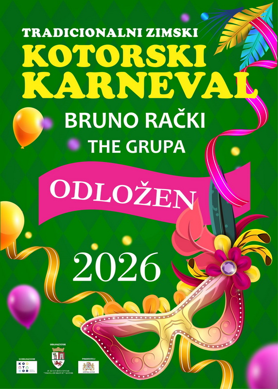 Zbog najavljenih nepovoljnih vremenskih uslova, Organizacioni odbor Tradicionalnih zimskih kotorskih karnevalskih fešti donio odluku je o odgađanju održavanja karnevala i tombole koji su planirani za ovaj vikend.
