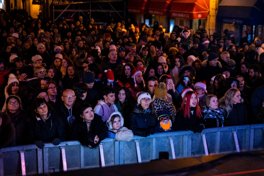 Program je započeo nastupom Ansambla Toć, koji je svojim hitovima zagrijao publiku i najavio nezaboravnu novogodišnju noć, dok je Parni Valjak, kao jedan od najznačajnijih regionalnih bendova, donio snažnu emociju i prepoznatljivu muzičku priču, povezujući generacije i stvarajući posebnu atmosferu uoči ponoći.
