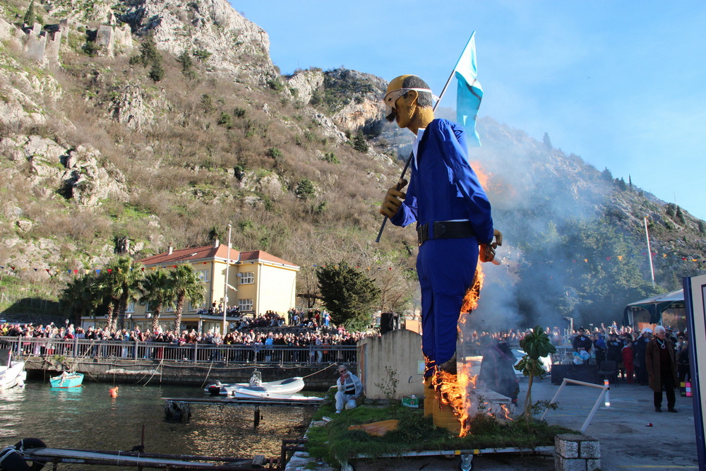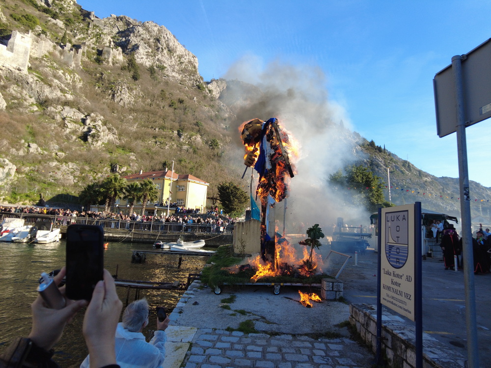 Pred više hiljada posjetilaca, po lijepom i sunčanom vremenu Kotorani su danas na spalili ovogodišnjeg krivca, koji je u duhu karnevalske tradicije proglašen krivim za sve loše, za nedaće i probleme, u protekloj godini u Kotoru i Crnoj Gori. Karnevala su nazvali “Miron Tribulus zvani Pirun“.