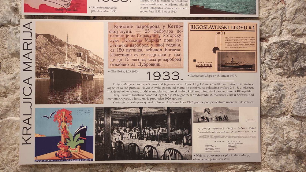 -Ovom izložbom, kao i svakom budućom, dokazujemo da je veza Kotora i putničkih brodova neupitna i neraskidiva, a na nama je da je njegujemo i činimo održivom, kazao je autor izložbe Ilija Mlinarević, kustos Pomorsko-tehničke zbirke Pomorskog muzeja, objasnivši da je odabrao razdoblje nakon Prvog svjetskog rata koje je poznato po naglom rastu brodova namijenjenih krstarenjima. Najavio je i da će se XIX vijeku više posvetiti iduće godine, kada se navršava 190 godina od osnivanja Austrijskog Lloyda.