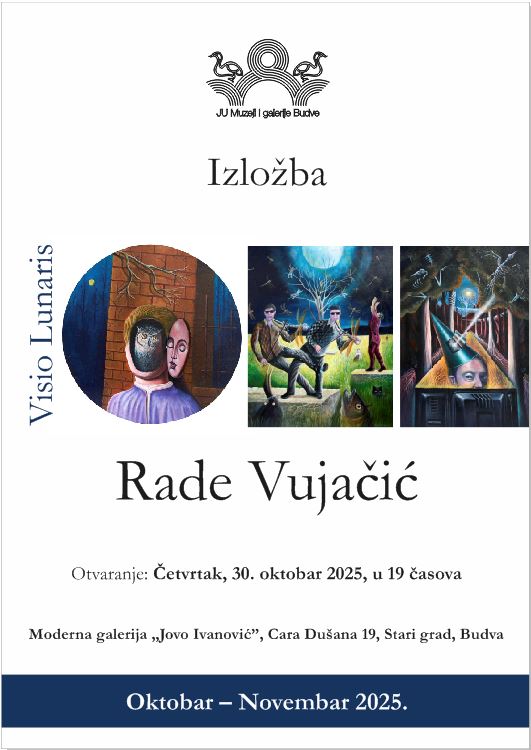 Izložba slika „Visio Lunarisˮ akademskog umjetnika Rada Vujačića biće otvorena u četvrtak, 30. oktobra u 19 sati u Modernoj galeriji „Jovo Ivanović” u Budvi. U tekstu koji je napisala za prateći katalog, kustos izložbe- mr Senka Subotić ističe da Rade – Ratko Vujačić svojim slikama uvodi likovnu publiku “u jedan iracionalni, tajanstven i asocijativan svijet simbola sjedinjenih u viziji o božanskom kutku i tajnom skloništu od opasnosti i mračnih sila svemira”. Među simbolima na slikama Vujačića najprisutniji su voda, riba, sova, drvo…, “ali ne u svom običajenom značenju života, nego je voda zamućena, drvo ogoljeno, riba van vode, ili samo njen kostur, sova kao nijemi posmatrač mudro nadzire”…