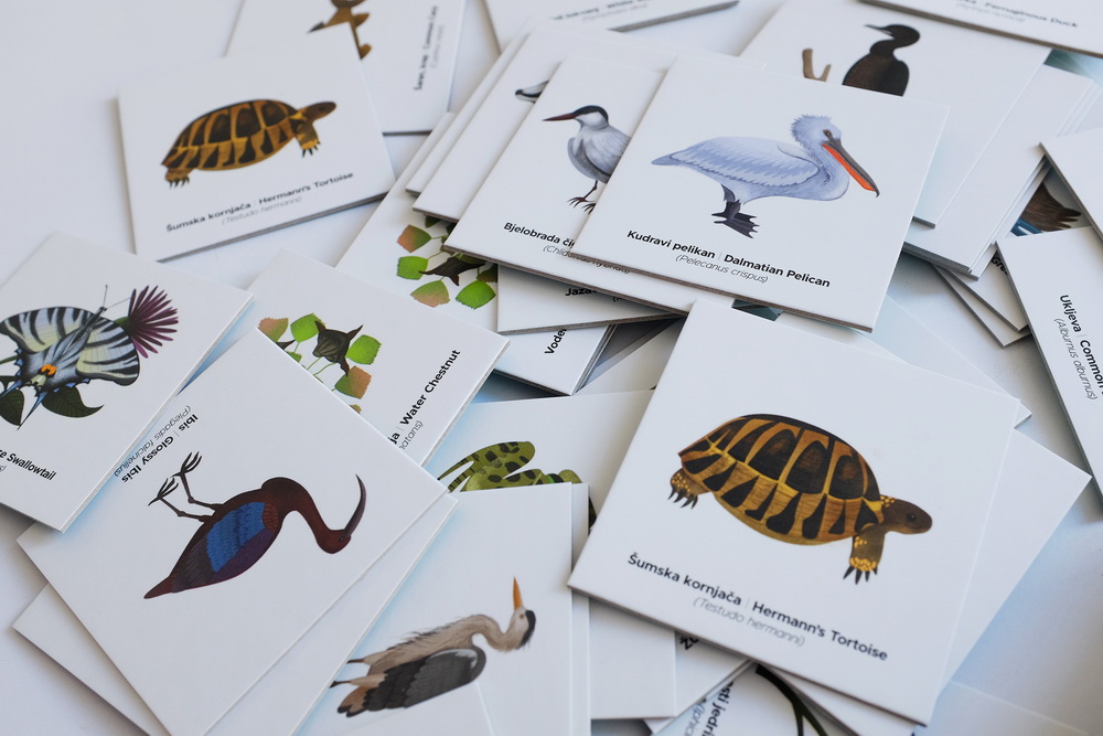 Kroz 20 parova kartica sa pažljivo biranim biljnim i životinjskim vrstama koje nastanjuju Skadarsko jezero i njegovu okolinu, ova igra poziva na istraživanje, promišljanje i povezivanje s prirodom. Od kudravog pelikana, preko šumske kornjače, do neobične kasaronje – svaka kartica nosi znanje, priču i poziv je na zaštitu životne sredine.