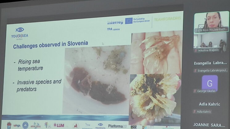 Tokom video prezentacije Kreršimira Kovača iz Šibenika, projektnog partnera iz firme”Platforma 22” , voditelja Haba za digitalne inovacije “Agrifood Croatia” i uzgajivača mušalja i ostriga ostvarena je lijepa interakcija sa Snežanom Hudiček, crnogorskom predstavnicom uzgajivača iz firme “Boka Sea Food”. Razmjenili su iskustava u vezi korišćenja plastičnih mreža, zaštite od predatora (orada) i drugih važnih detalja za uzgoj školjki.