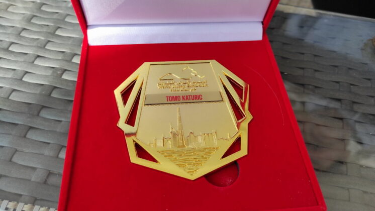 Pod pokroviteljstvom FIPA-e (Svjetske federacije filatelista) Katurić je na velikoj svjetskoj izložbi u Dubaiju, u kojoj je od 4. do 8. februara učestvovalo 80 zemalja sa preko 600 izlagača, dobio zlatnu medalju i sertifikat za vrhunski obrađenu i predstavljenu kolekciju pod nazivom „Poštanska istorija Boke Kotorske od 1809. do 1875. godine“. Predstavio je istoriju Boke i Crne Gore i posebno mu je drago što je pismenost ovog naroda u tom dobu bila na visokom nivou.