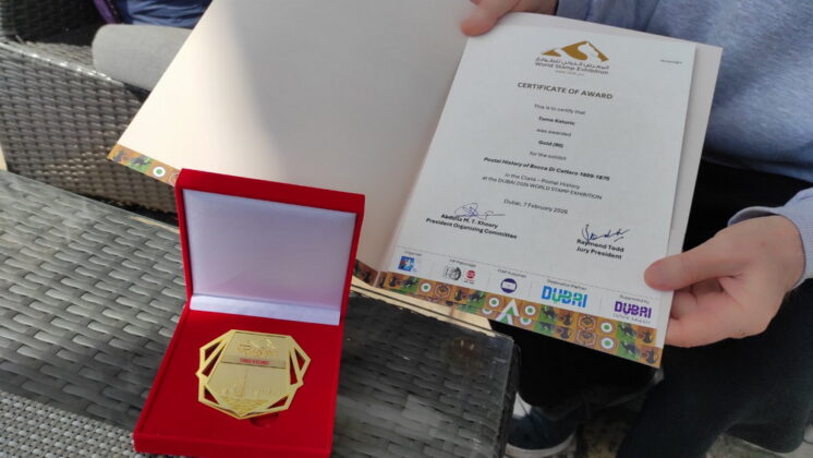Tomo i Jelisaveta Katurić iz Kamenara predstavili su svoju zemlju u Dubaiju na svjetskoj izložbi filatelije i za raritet, očuvanost, “important“, istraživanje, dizajn i kvalitet pisama dobili zlatnu medalju i sertifikat