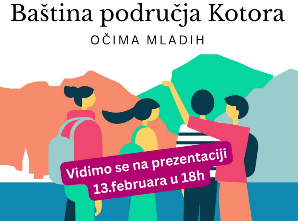 Pozivamo te na prvo zajedničko okupljanje i prezentaciju planiranih aktivnosti programa „Baština područja Kotora – očima mladih“, koje će se održati u petak, 13. februara, u 18 časova, u Muzičkoj sali Centra za kulturu “Nikola Đurković” u Kotoru.