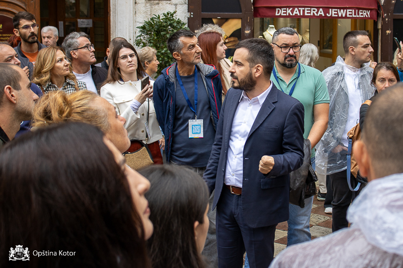 Na sopstvenu inicijativu poveo je goste u šetnju kroz Stari grad, lično im otkrivajući njegove najljepše kutke i priče koje čine Kotor posebnim. Tokom obilaska podsjetio je da je Kotor uvršten na Reprezentativnu listu svjetske prirodne i kulturne baštine pod okriljem UNESCO-a, što potvrđuje njegovu izuzetnu univerzalnu vrijednost i bogatu tradiciju.