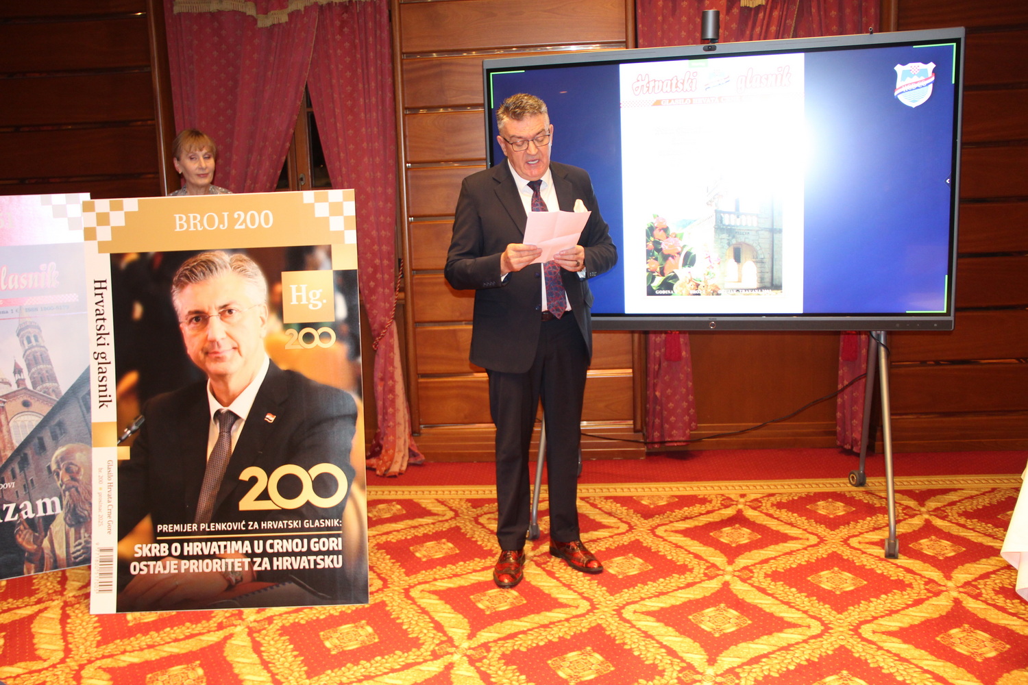 Jubilarni 200. broj Hrvatskoga glasnika, jedinog štampanog medija Hrvata u Crnoj Gori, svečano je u četvrtak predstavljen u Kotoru.