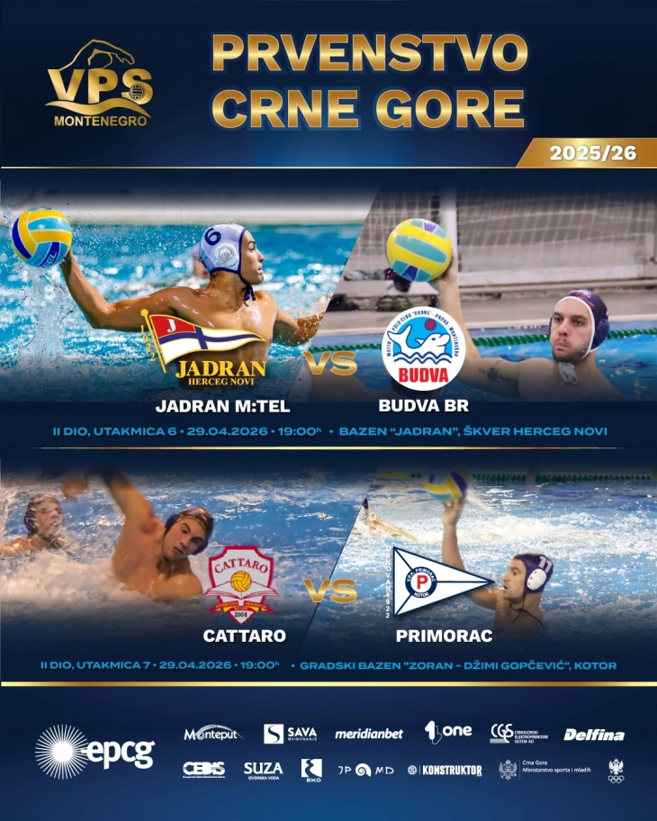 Utakmicama u Herceg Novom i Kotoru danas će biti nastavljeno takmičenje u Prvenstvu Crne Gore u vaterpolu.