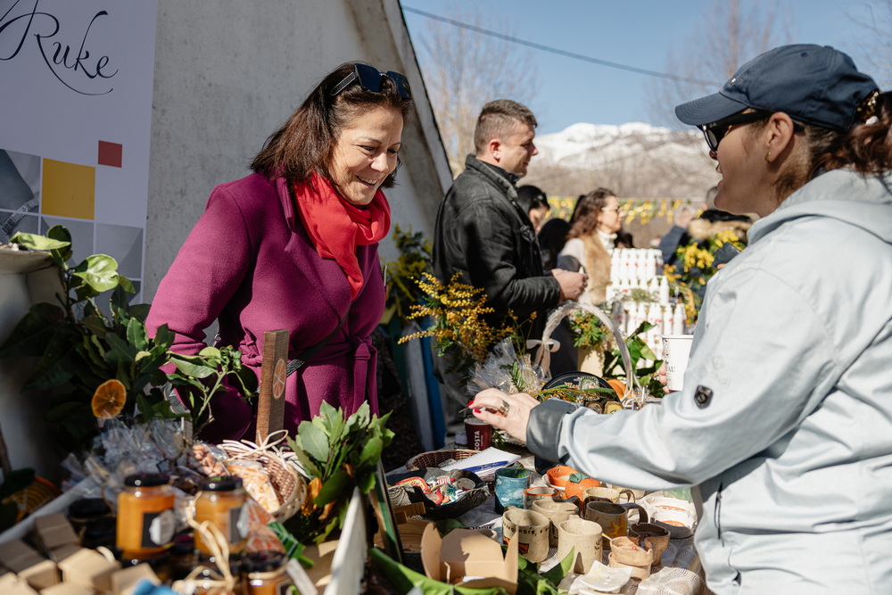 “Uvijek imam vremena za ovakve stvari. Ideje nastaju tako što ono što ja proizvodim povežem sa situacijom, odnosno danas smo povezali mimozu sa sirom. Sve smo to sklopili i ispašće neka dobra priča”, kazala je jedna od izlagača na bazaru, Svetlana Stanovčić iz sela Kameno.
