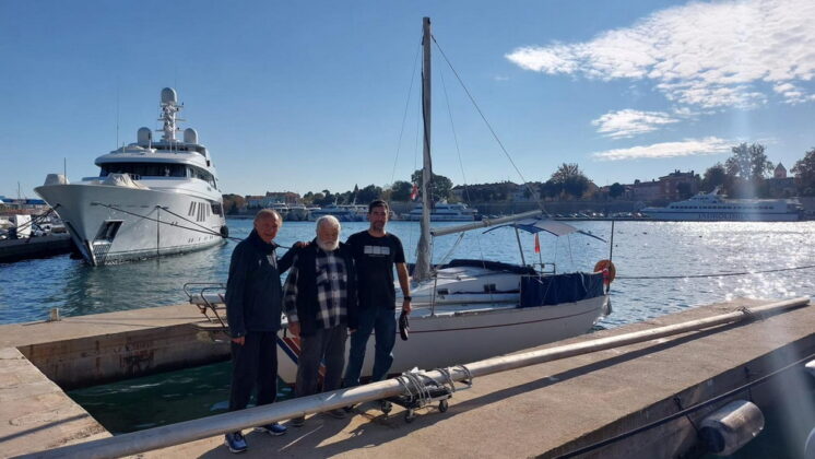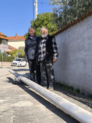 Zatim dolazi onaj lijepi dio… u Vodice stiže i Dušica Žarka Jurage koji je pozvao posadu iz Kotora da dođe u Zadar da im pokloni cijev jarbola od 13.5 metara!
