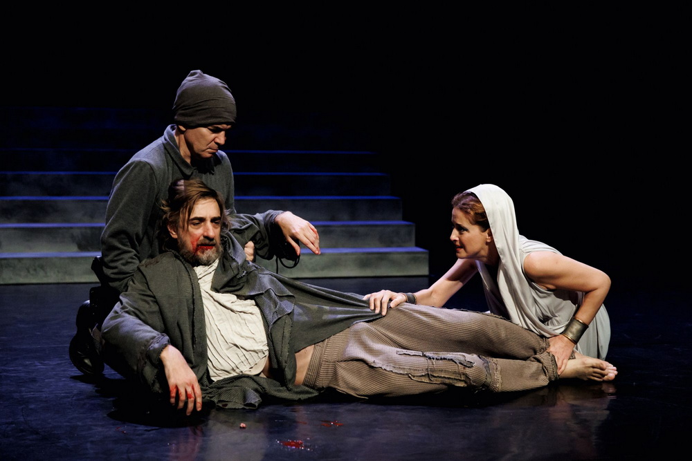 U predstavi igraju Bojan Dimitrijević, Jugoslav Krajnov, Jelena Stupljanin/Milica Zarić i Sanja Ristić Krajnov. Reditelj je uradio i scenografiju, kostimograf je Marina Vukasović Medenica, kompozitor i autor crteža je Aleksandra Vrebalov.