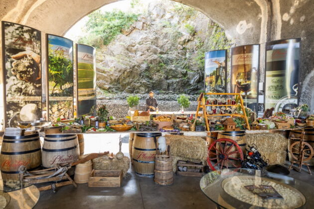“Ono što čini ovu priču posebnom je što smo kroz meni i čitav program povezali gastro ponudu cijele Crne Gore sa vinima Plantaža. Mislimo da je ovo jedinstven projekat zato što turistima na ovaj način prezentujemo ono što smo mi i ono što gosti žele. Na jednom mjestu mogu probati više vrsta sireva, meze, svježih salata, zimnice, slatkiša, domaćih hljebova, pita. Dosta hrane se sprema pred gostima. Imamo aparaturu na kojoj možemo spremati i rižoto i japrake. Ranije smo radili i prženog krapa, a možemo spremati i popeke, sve po željama posjetilaca,” naveo je član F&B experts tima, Nikola Merdović.