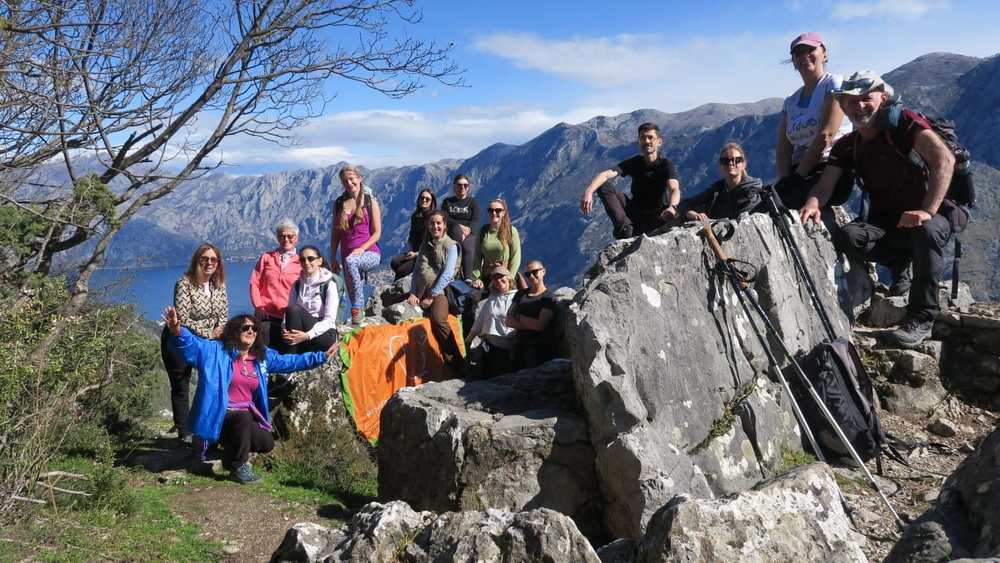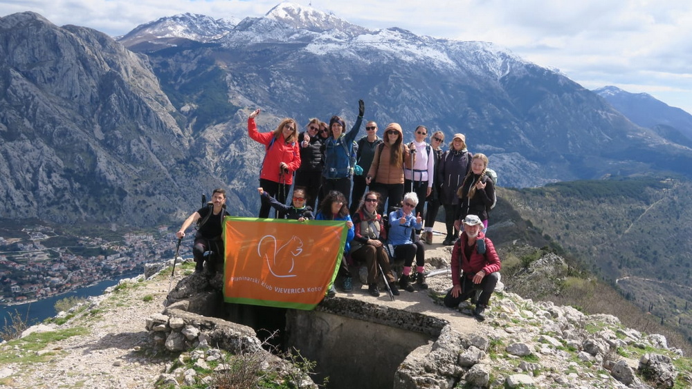 Grupa od 17 “Vjeverica”je sa vodičem Željkom Obradovićem iz Tivta napravila linijsku turu od Peluzice kanicama Franja Josipa do Vidikovca poviše Kotora, pa do Fortece na Vrmcu, a odatle se ispenjala na vrh na Sveti Ilija. Cijelom stazom uživali su u pogledu na Kotorski zaliv, a poslije sa platoa Vrmca, grebenskim hodom, naslađivali se fantastičnim pogledom sa obje strane brda, na Tivat i na Kotor.