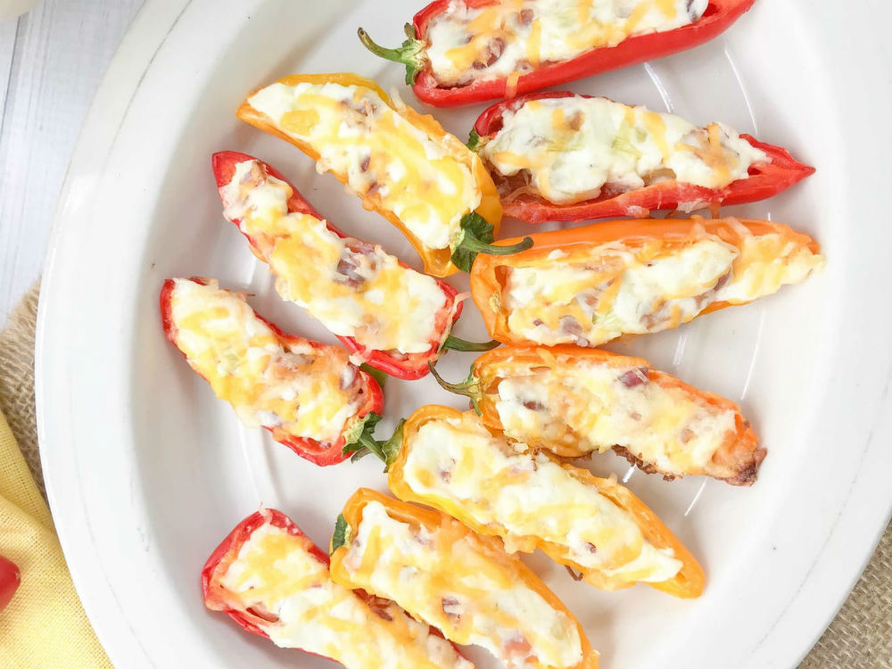 5. Paprike nježno poredati u pleh obložen papirom za pečenje i peći na 200 stupnjeva dok paprike ne budu pečene i slanina hrskava.