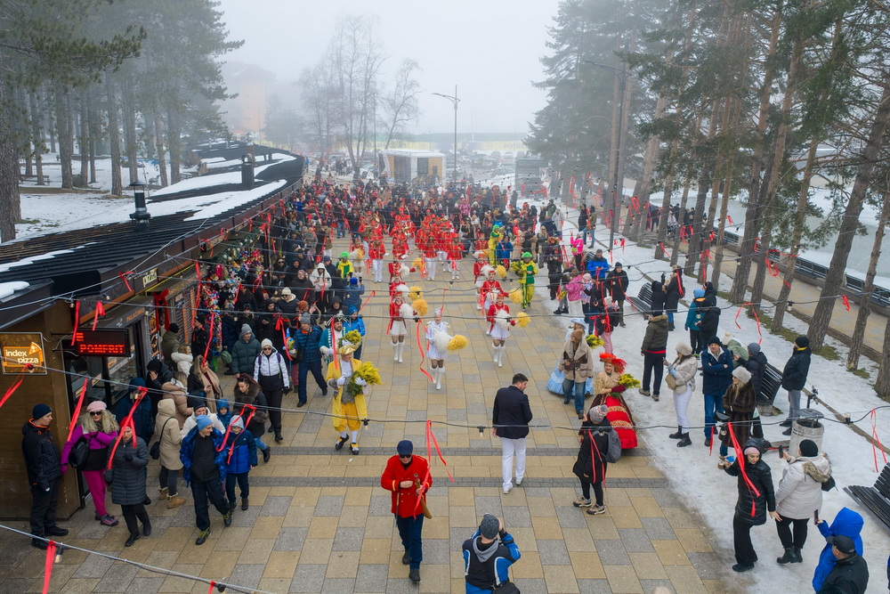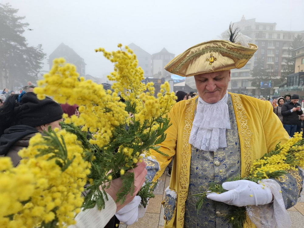 Mimoza je juče zamirisala Zlatiborom i uprkos hladnom, zimskom danu, nagovjestila skori dolazak proljeća i feštu koja poziva da se dođe u Herceg Novi. Pucanj trombonjera označio je da je vrijeme za svečani defile Gradske muzike, mažoretki, trombonjera, veselih maškara koji su, praćeni velikim brojem posjetilaca, prošli glavnom ulicom, a potom nastupili na centralnom trgu.