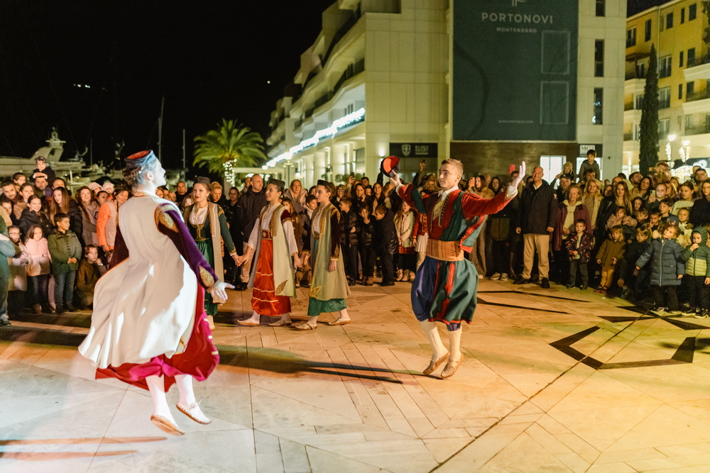 Program je započeo okupljanjem gostiju i prigodnom muzičkom podlogom, nakon čega je defile Gradske muzike Herceg novi i mladih mažoretki unio svečanu energiju kroz Portonovi. Nastup dječjeg ansambla KUD „Sloga“ dodatno je uljepšao noć, dok su se najmlađi posebno radovali njihovoj izvedbi.