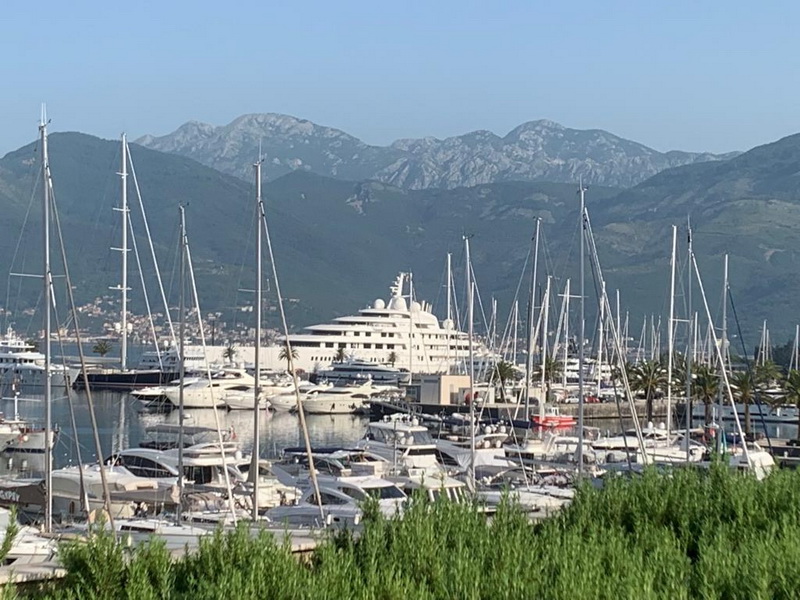 Jahta koja priopada predsjedniku Ujedinjenih Arapskih Emierata, šeiku Kalifi bin Zajedu Al Nahijanu, vezala se na mulu 5 tivatske marine, na mjestu koje je sposobno da primi brodove dužine do čak 250 metara. „Azzam“ je na mulu 5 van domašaja šetača kroz marinu Porto Montenegrio i fotografa, pa njegova posada i putnici uživaju u potpunojn diskreciji.